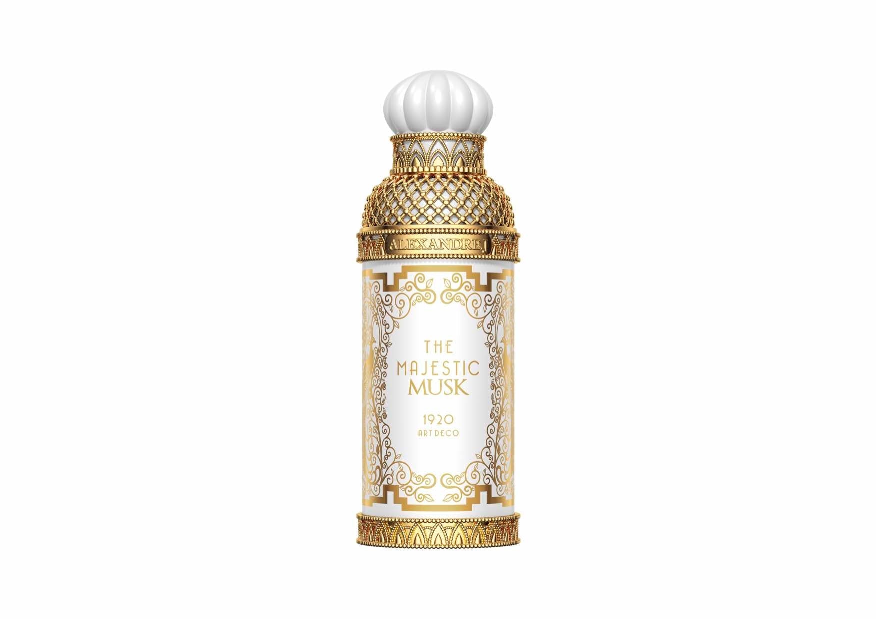 Majestic Musk est un des parfums les plus populaires de la collection Art Deco, lancée en 2020 pour célébrer les 100 ans du style d’art décoratif prédominant des années 1920 – un style d’arts visuels, d’architecture et de design. Alexandre J reprend son style fétiche dans ses somptueux designs, les plus belles matières premières et des couleurs vives.